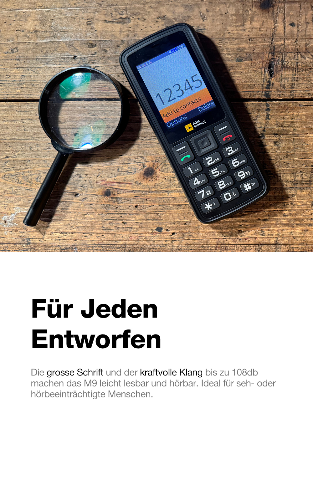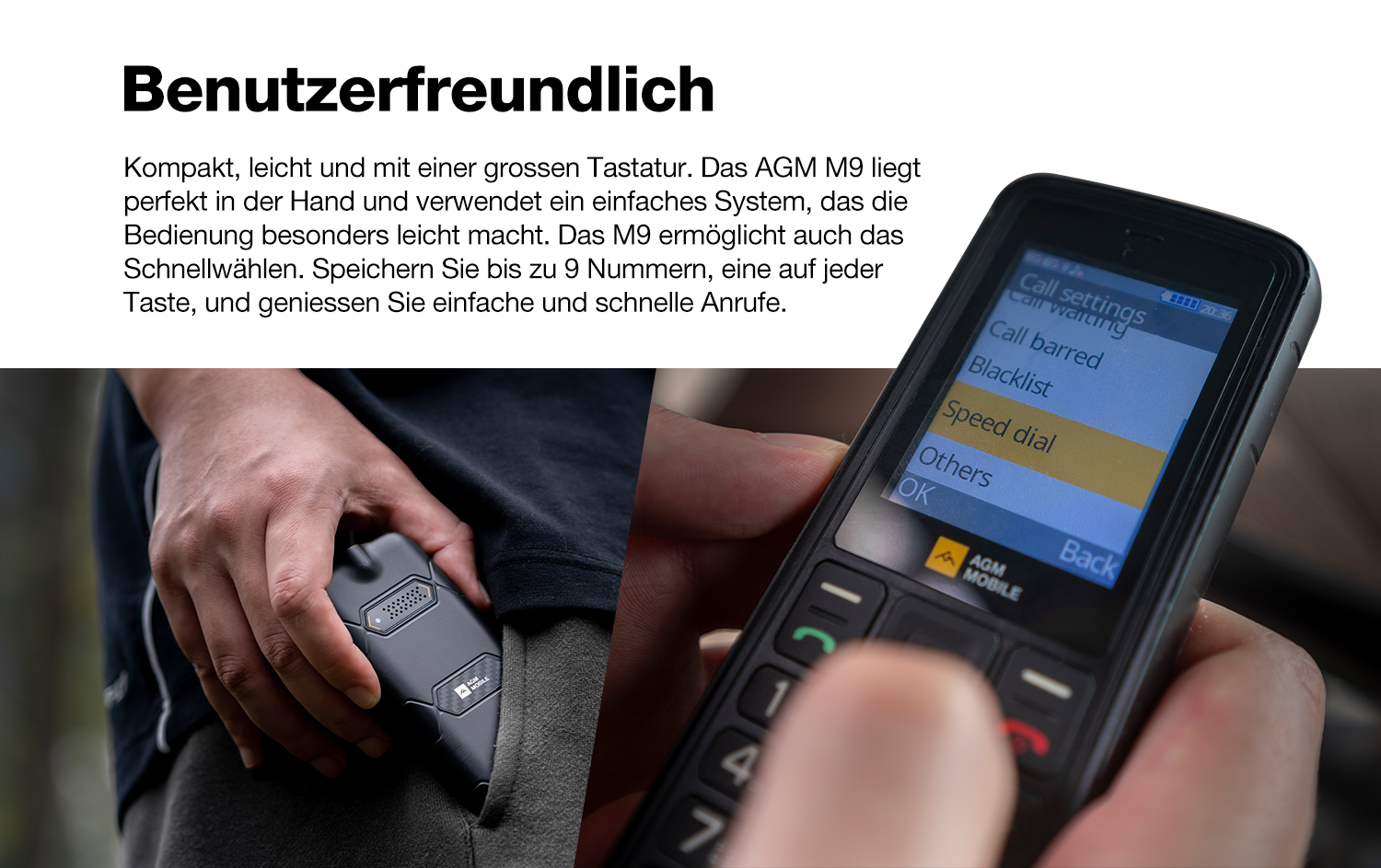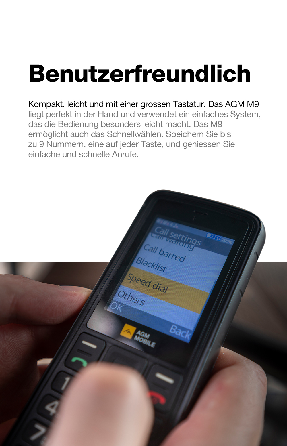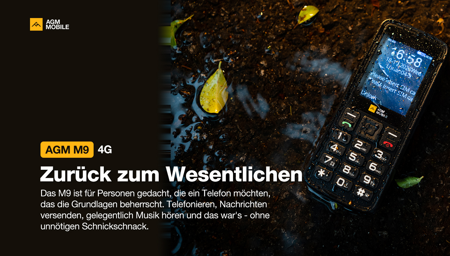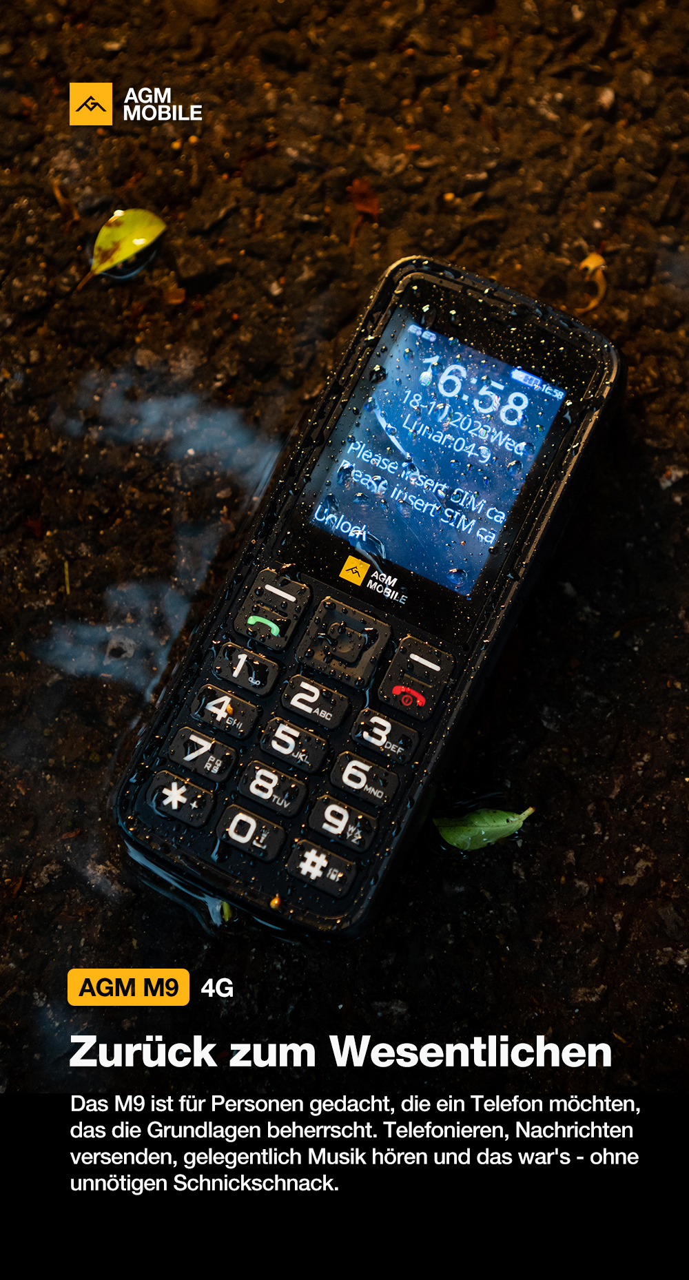 Das AGM M9 konzentriert sich auf die wichtigsten Funktionen: Telefonieren, Nachrichten senden und Musik hören – ohne unnötigen Schnickschnack.