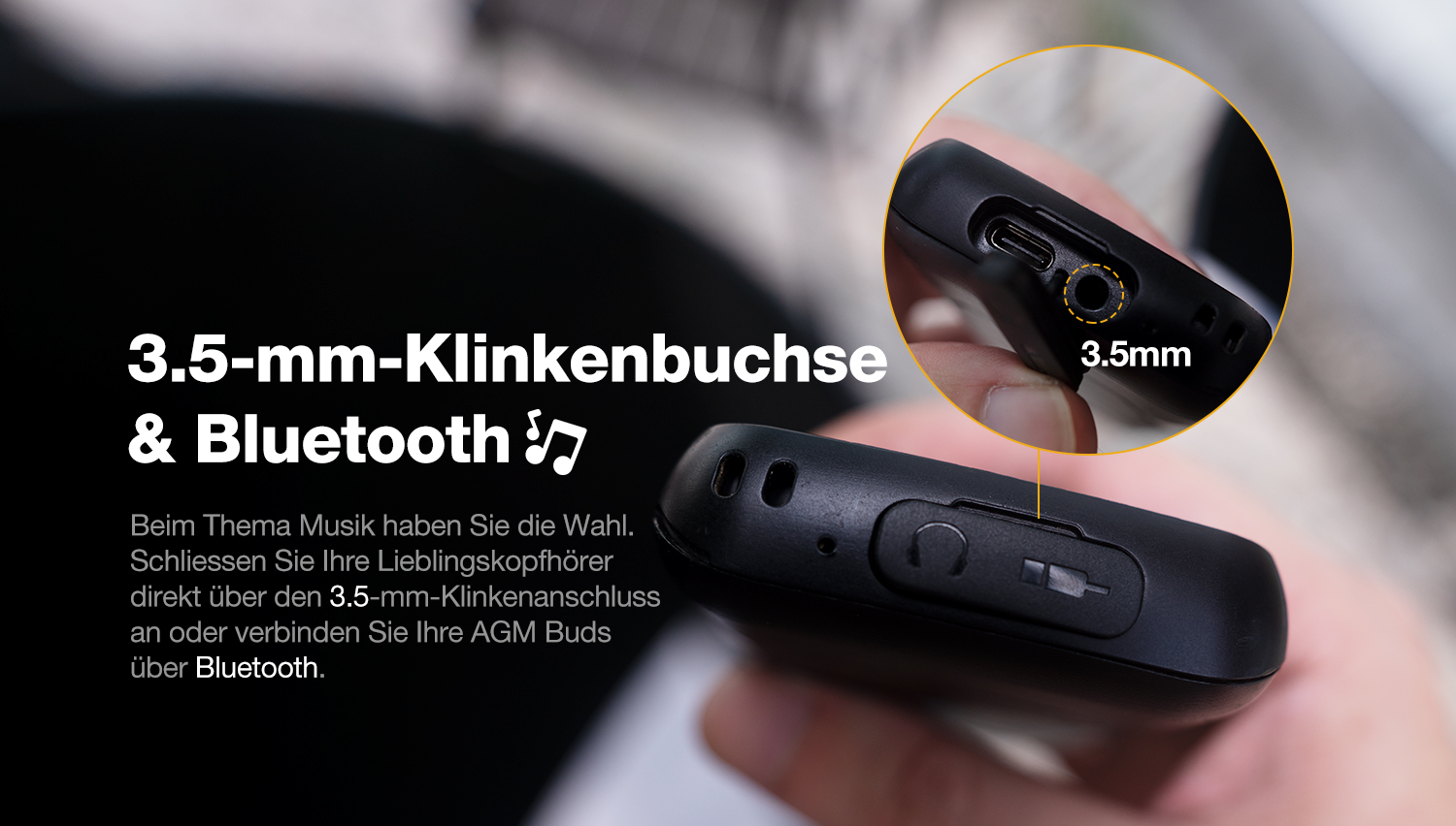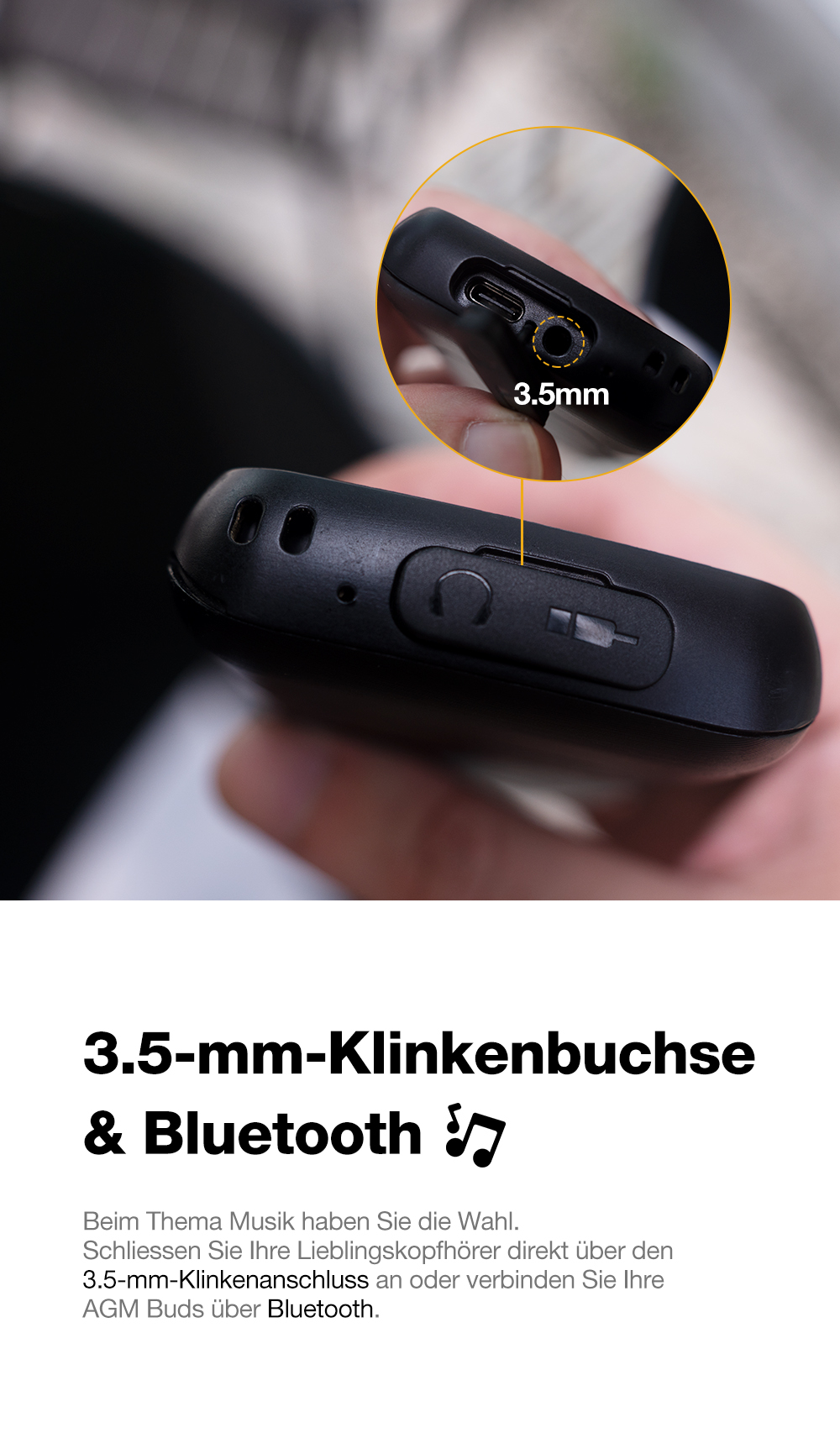 - 3,5 mm Kopfhörerbuchse und Bluetooth für kabelloses Hören
