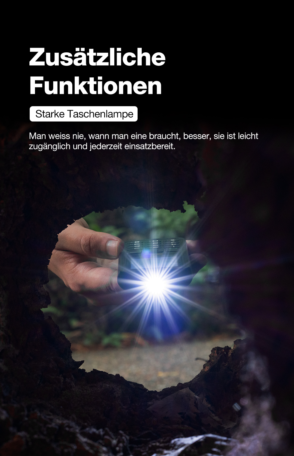 - ✔ Starke LED-Front-Taschenlampe: Immer griffbereit